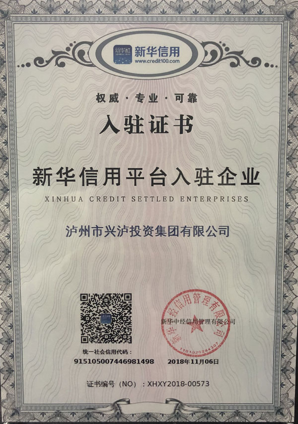 “新華信用平臺入駐企業(yè)”,這是興瀘集團(tuán)獲瀘州市“誠信企業(yè)”、“四川省誠信守法示范企業(yè)”、“四川省守合同重信用企業(yè)”稱號之后,在誠信建設(shè)方面獲得的又一成果。