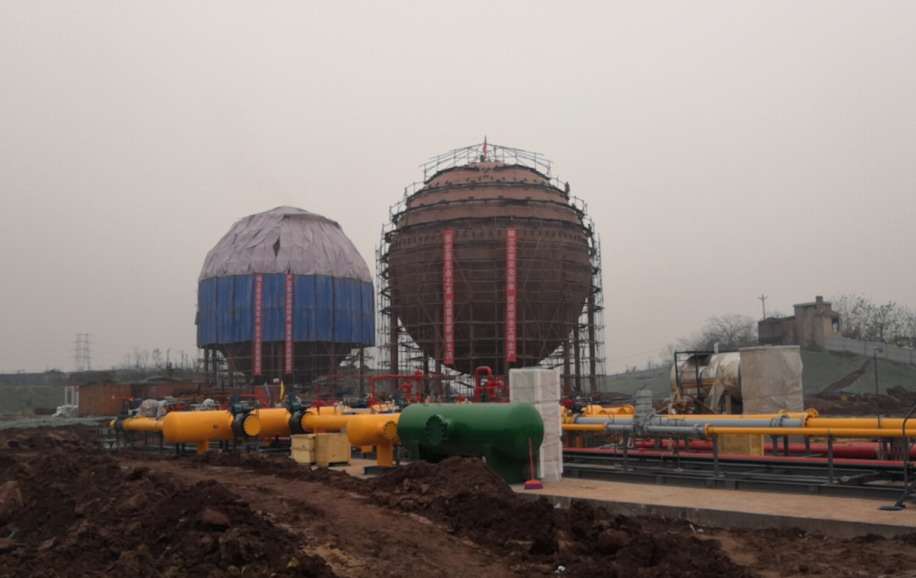 瀘州華潤(rùn)興瀘燃?xì)庥邢薰窘痣u灣儲(chǔ)配站項(xiàng)目球罐組裝完成